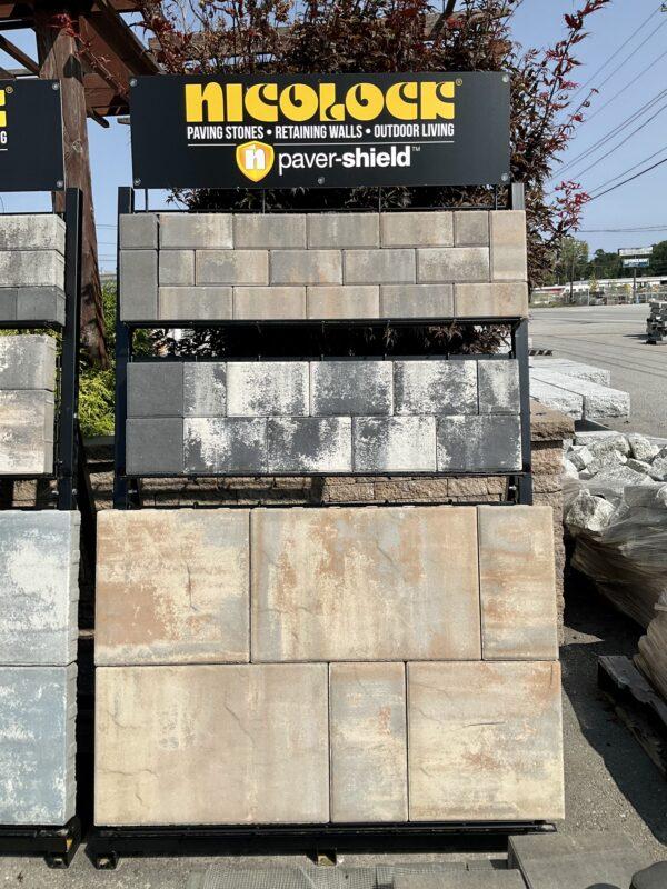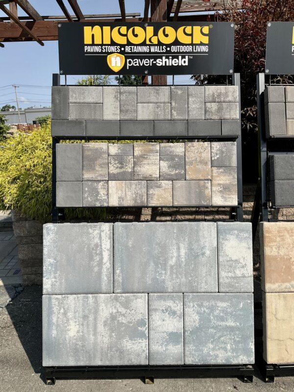 Let’s delve into a closer look at the Nicolock pavers featured in our display, arranged from top to bottom: