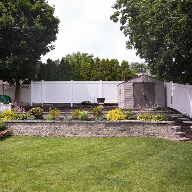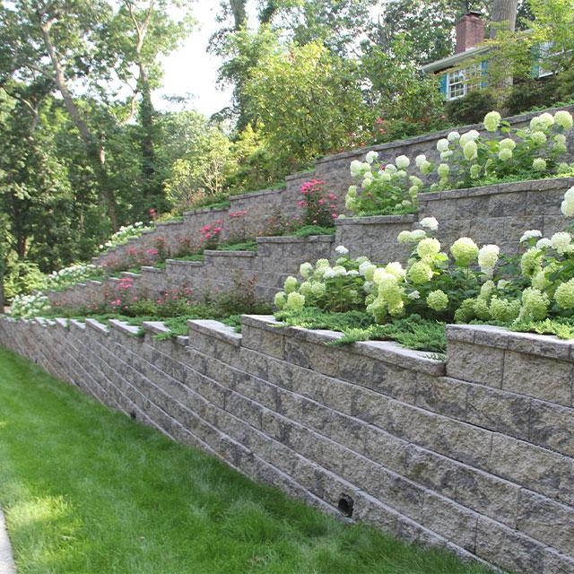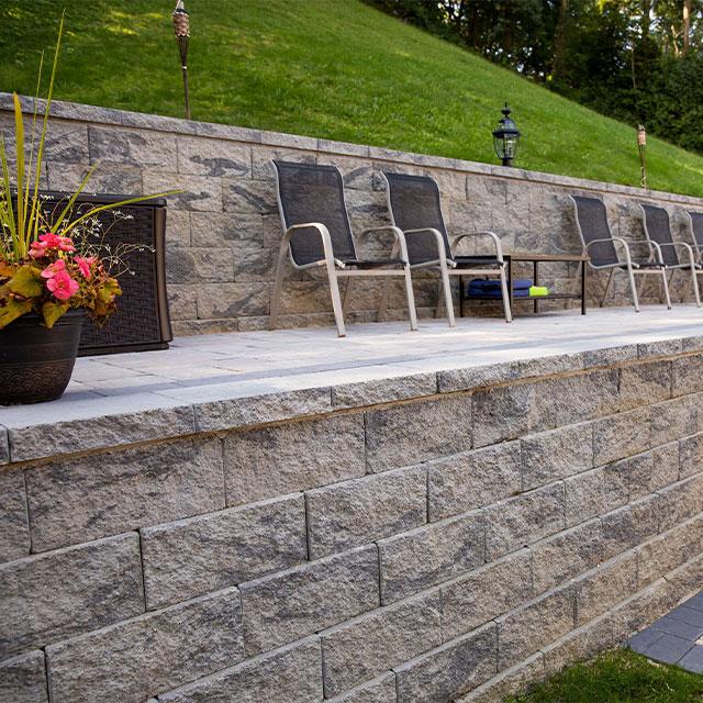 If you have a large yard or outdoor space, Nicolock’s 8-inch Alta Pro retaining wall system will reinforce its beauty with functional grandeur. The Alta Pro is a bigger version of our popular Nicolock Alta Wall with blocks that are 2 inches taller and wider. This allows for expansive tiered retaining walls, garden walls, elevated seating areas and more. A rear lip connection system keeps the single-sided wall system secure, while a one-inch setback per row offers a solid angle for preventing erosion on hills.