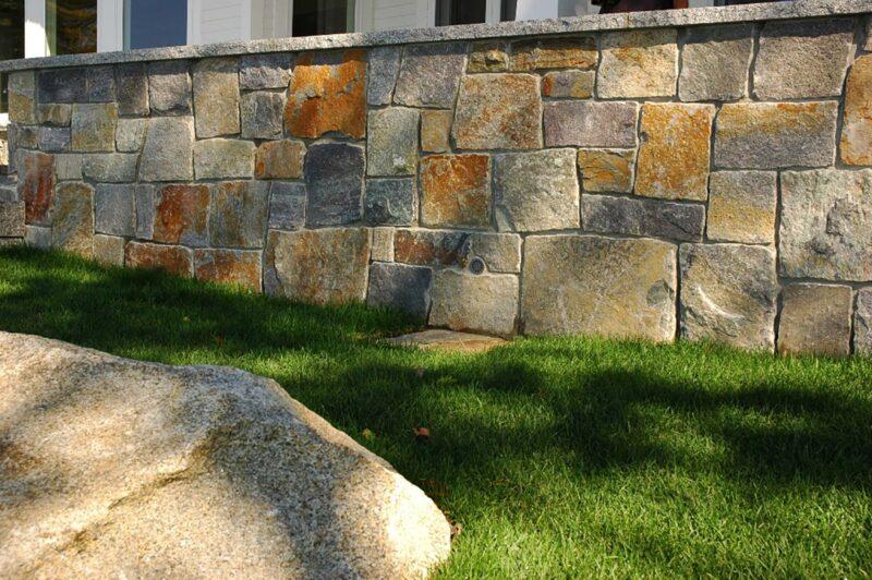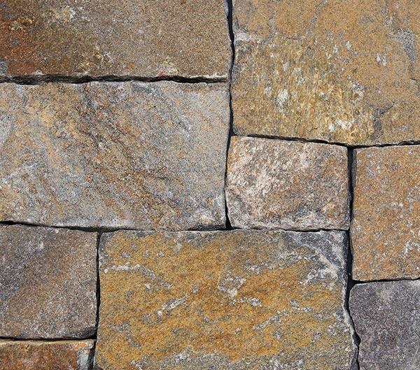 Basically rectangular and exhibiting seam and split faces of the stone, ledge stone projects a more linear appearance.