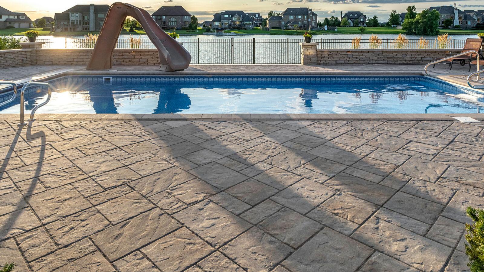 Inspired by natural cut flagstone, the blended colors and distinctive texture of Beacon Hill Flagstone has a relaxed look and feel, with all the benefits of Enduracolor technology. The subtle surface texture is comfortable to walk on in bare feet, but appears more dramatic in the light of sunrise and sunset. Sold in a random bundle of three relatively large sizes, Beacon Hill Flagstone can be laid in a number of patterns for a more, or less, random appearance. A larger, XL rectangle is now available in most regions, to be used alone or in combination with the traditional random bundle. Together, these characteristics have made Beacon Hill Flagstone one of our most popular pavers for patios, pool surrounds and walkways.