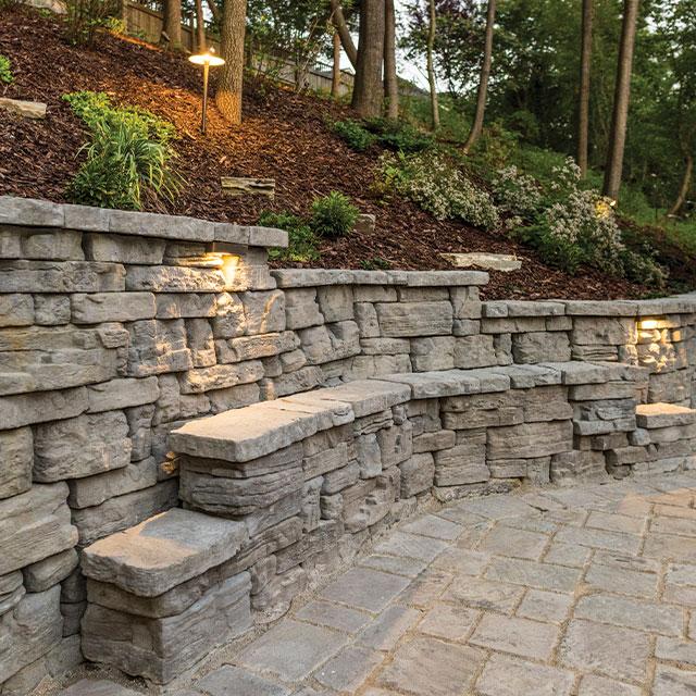 The Nicolock Belvedere Wall System allows you to enhance any landscape or hardscape with a long-lasting organic look. The six different sizes and shapes of the Belvedere wall stones mimic the irregular look of genuine quarry stones, but at a lower price point. Because of their precise engineering, the stones fit perfectly together and are remarkably durable. Nicolock’s dynamic Belvedere Wall System is fast to install as freestanding or retaining walls.