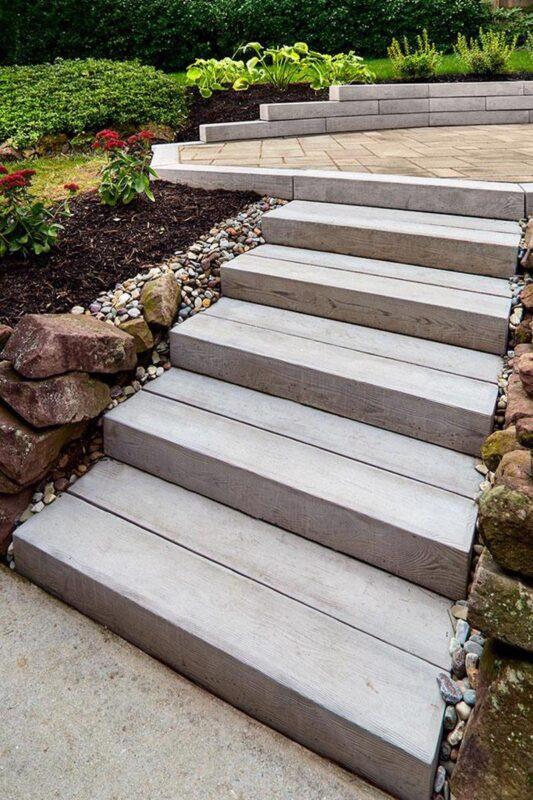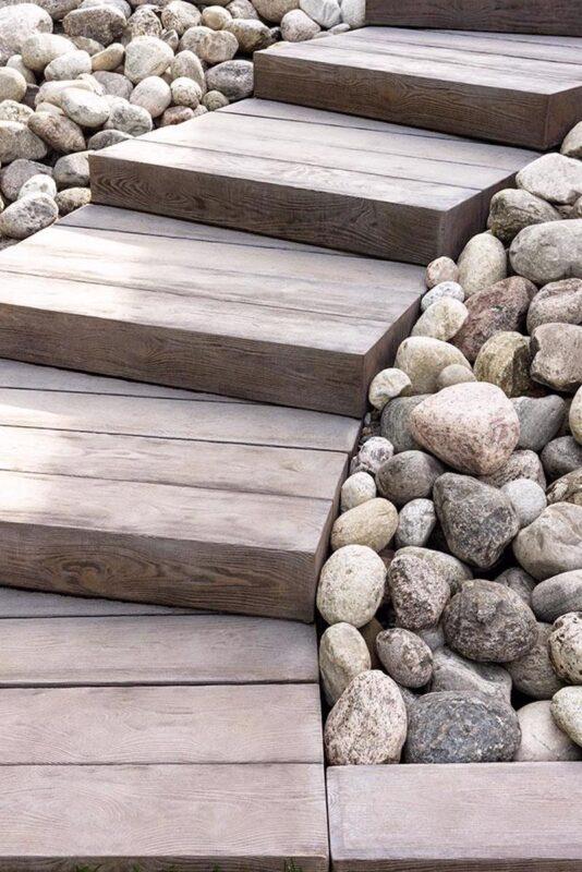 Techo-Bloc’s Borealis wood look-a-like collection, extended to wood-like outdoor steps. Unlike lumber, these steps are made of concrete to create wooden-like stairs that won’t warp in the outdoors. Inspired by the use of railroad ties in both traditional and modern landscape design, the Borealis outdoor step was designed for compatibility with the Borealis wood-like garden wall. The step is designed to look like 2 large trimmed logs stuck together. Offered in 3 alluring wood colors and compatible with the rest of the Borealis collection of products, Borealis is the best choice for capturing the esthetics of wood with the practicality and durability of concrete.