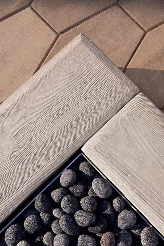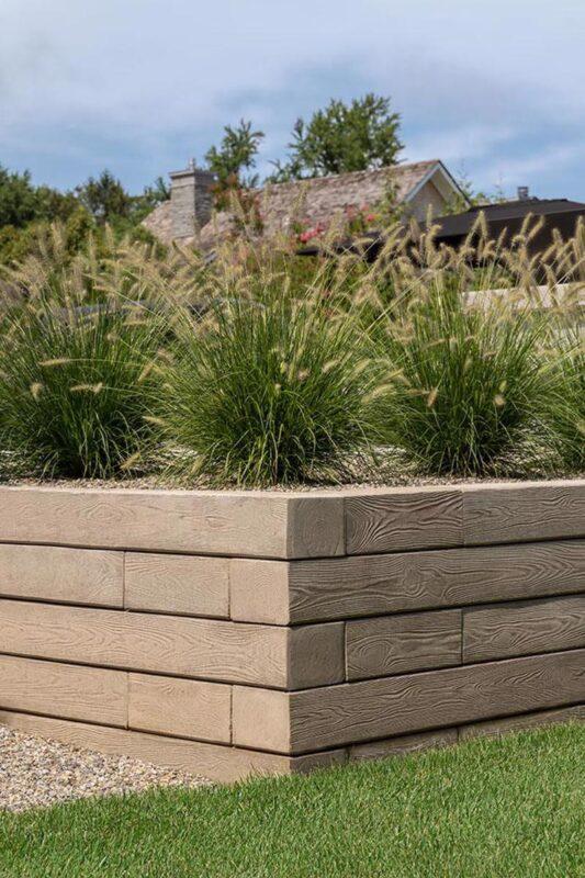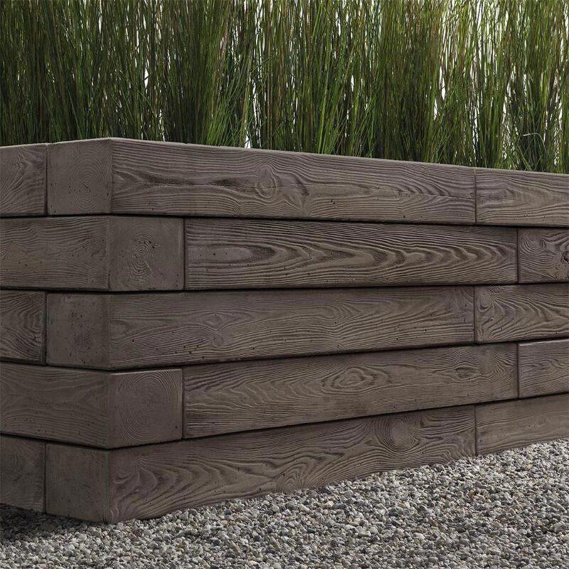 The Borealis retaining wall replicates the rustic wood garden wall look in a maintenance-free, more durable concrete option. Inspired by the use of railroad ties in both traditional and modern landscape design, the Borealis wall’s versatility extends from simple edging for flowerbeds all the way to the creation of garden walls and outdoor kitchens. Offered in two alluring wood colors and compatible with the rest of the Borealis collection, the Borealis retaining wall is the best choice for capturing the esthetics of wood with the practicality and durability of concrete.