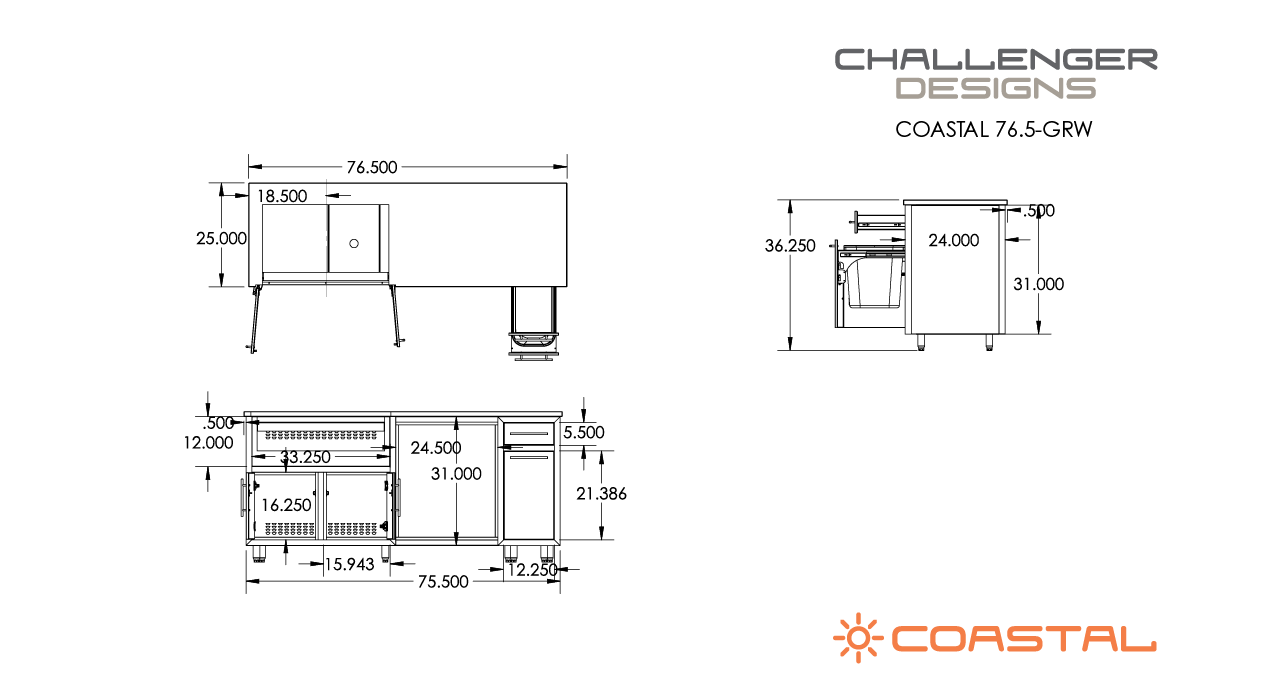 - Casters (on all units except for 73.5-GRW, 90.125-WGRS, and 90.125-WGRDD)