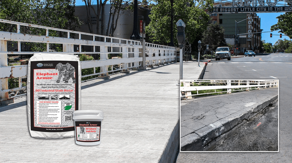 Elephant Armor® DOT Industrial Grade Mortar is ideal for concrete repairs for: walkways, curbs, ramps, slabs, spalls, cracks, bridges, parking structures, tunnels, dams, industrial plants or anywhere an ultra-high strength concrete repair mortar is called for. This varying slump mortar can be placed with a textured roller or traditional tools, and shaped or molded to a minimum thickness of ¼”.   For vehicular applications, please consult your specifying engineer.
