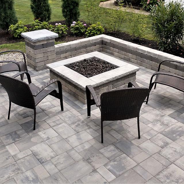The Fire Pit with Verona Wall is sold as a kit. Each kit includes a Verona Wall and a steel insert. Coping and grates are optional, allowing you to easily customize your fire pit to your space. This design makes it easy to match your outdoor design scheme. The Verona Wall Fire Pit measures approximately 48″ square and 18″ high with the optional coping.