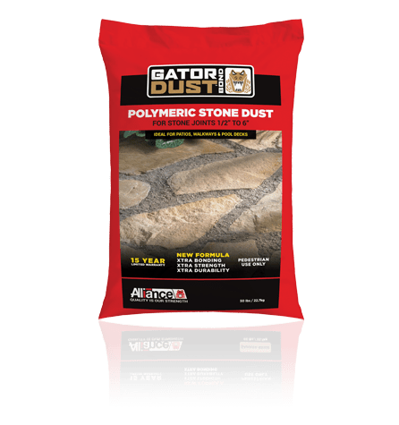 Gator Dust Bond is a unique mixture of polymer binders and calibrated stone available in Sahara Beige, Stone Grey. Once Gator Dust Bond sets, it becomes very firm and locks between the stone joints while still retaining flexibility and providing a long lasting, durable jointing material. Gator Dust Bond is recommended for a variety of uses including pool decks, patios, footpaths, and any other pedestrian applications.