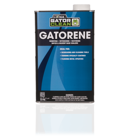 Gatorene is ideal for removing, retouching & restoring water & solvent-based sealers. Gatorene will also remove certain adhesives, and is an excellent clean-up solvent for tools and equipment immediately after use. Not intended for sale or use in California. It is also great for clean up and flushing of sealers, metal sprayers.
