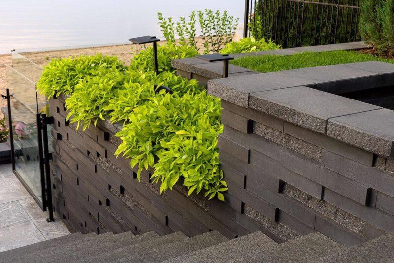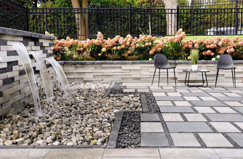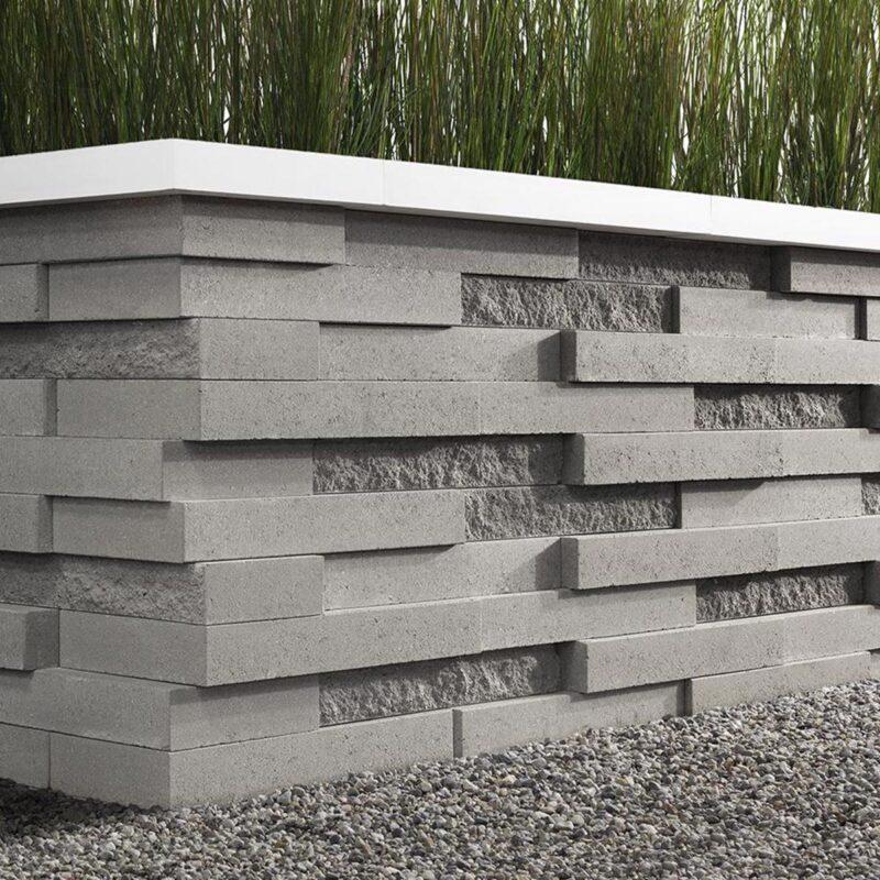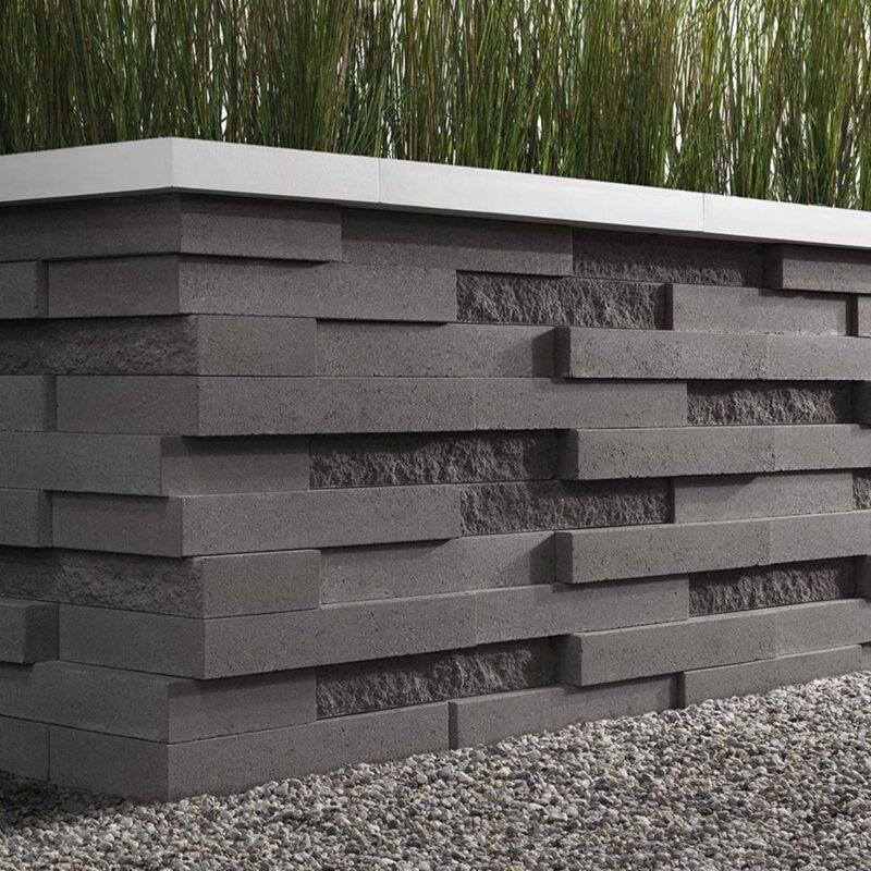 Techo-Bloc has redefined landscape products once again with this eye-catching ultra-modern double-sided retaining wall. The Graphix wall’s varying depths and unique but simple installation process creates a 3-dimensional visual effect. The mix of smooth and chiseled textures add another factor of visual interest to this wall, making it perfect for design lovers and those seeking something sleek and out of the box. Great for retaining soil, building planters, blade walls or vertical elements such as fire, water or outdoor kitchen features, Graphix is part of the dry cast collection.