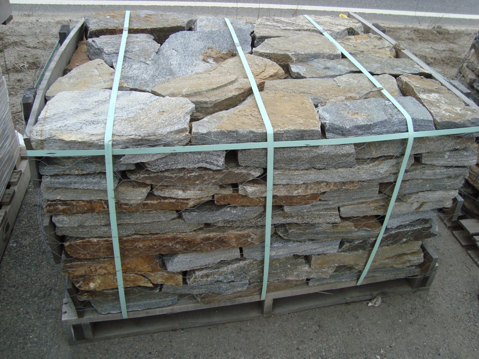 Robust Green Mountain Thinwall, in an assortment of 1 to 3 inch thick. All stones are one man stones. Naturally occurring in the New England landscape these Fieldstones are handpicked in Vermont to provide the best quality you will find. The perfect Thinwall for your rock wall or garden landscaping. Sold by the pound or the full pallet.