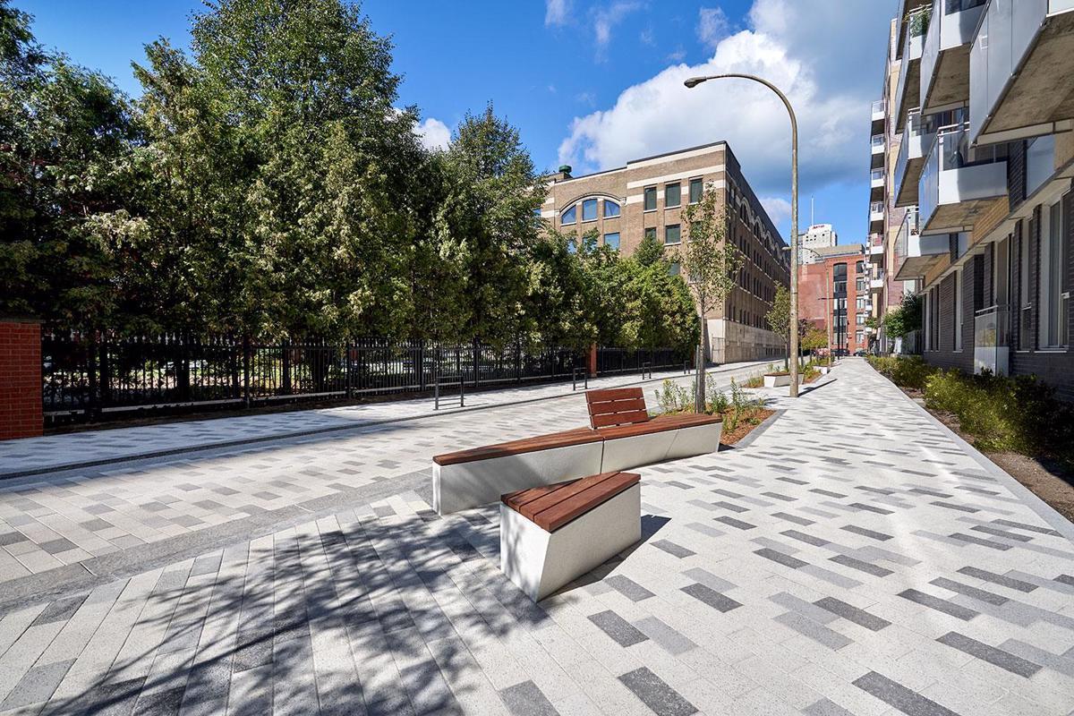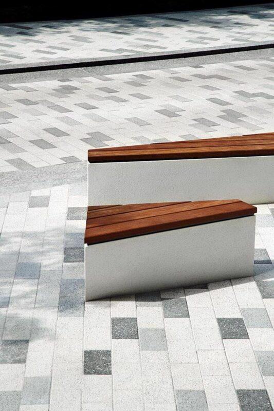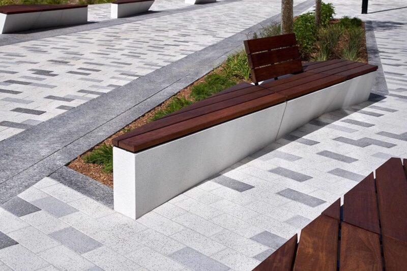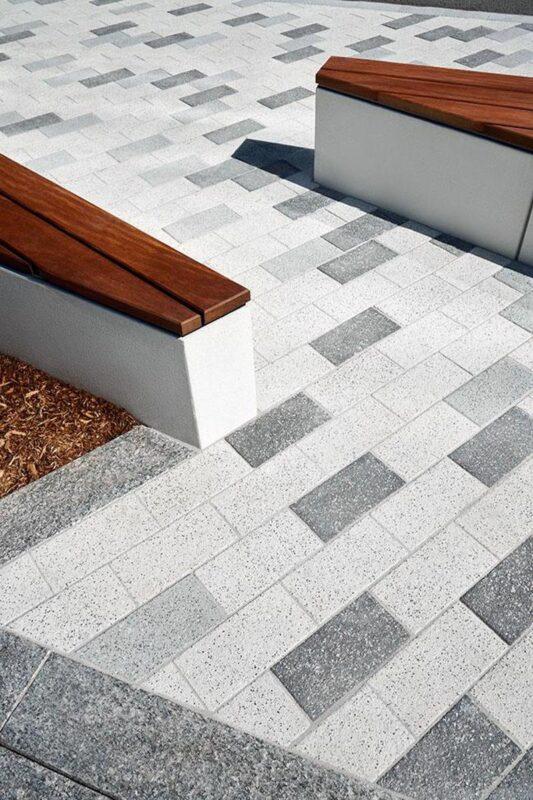 Industria paver in Granitex is a modern paver option most often used for public works in cutting-edge designs for plazas, public squares, parks and museums. The granitex finish provides a granular texture that is highly slip-resistant and often used as a decorative banding with Industria smooth pavers. Its various dimensions & scales, de-icing salt resistant characteristics and 100mm height makes this paver a popular choice amongst architects designing industrial, commercial and institutional projects.