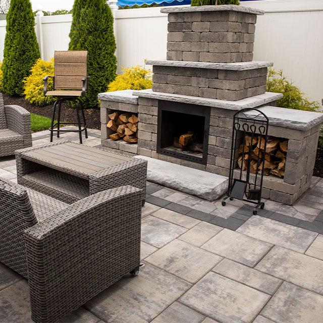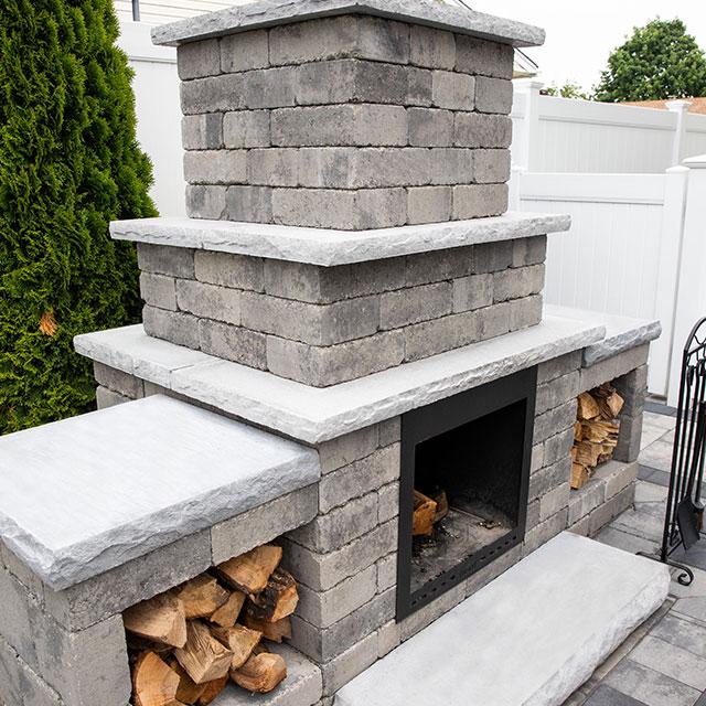 Like its big brother, the Jr. Fireplace with Verona Wall can easily match your outdoor décor. Choose from bestsellers like Westchester Blend, Golden Brown Blend, Granite City Blend, South Bay Blend and more. A 6″ x 48″ x 16 1/2″ rockface step is included, giving the fireplace a more traditional feel. An optional wood box is also available. The Jr. Fireplace with Verona Wall is sold as a kit for hassle-free ordering and installation.