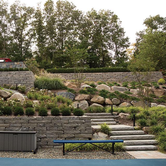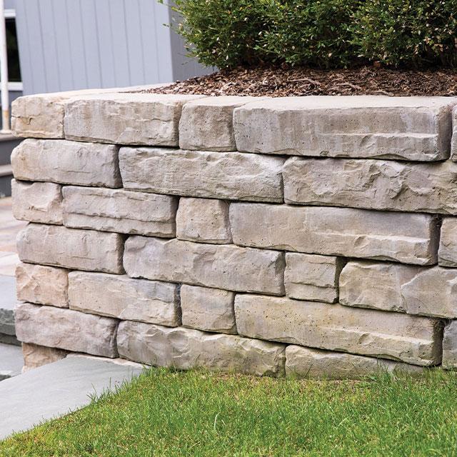 The Kodah Wall from Nicolock is a large-scale retaining wall that retains its integrity for decades of use. Because of our state-of-the-art manufacturing process, these retaining wall blocks have the texture of rough, quarried limestone with a consistent, durable base mix. Each pallet includes stones in four different lengths to give your walls a uniform or overlapping look. You can build a multilevel garden wall, enclosed outdoor entertaining area or extra-tall retaining wall to protect living spaces from erosion.