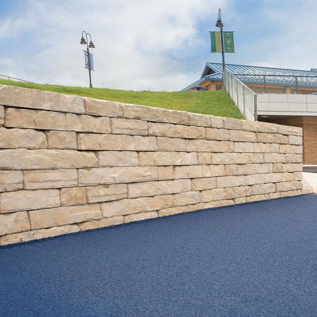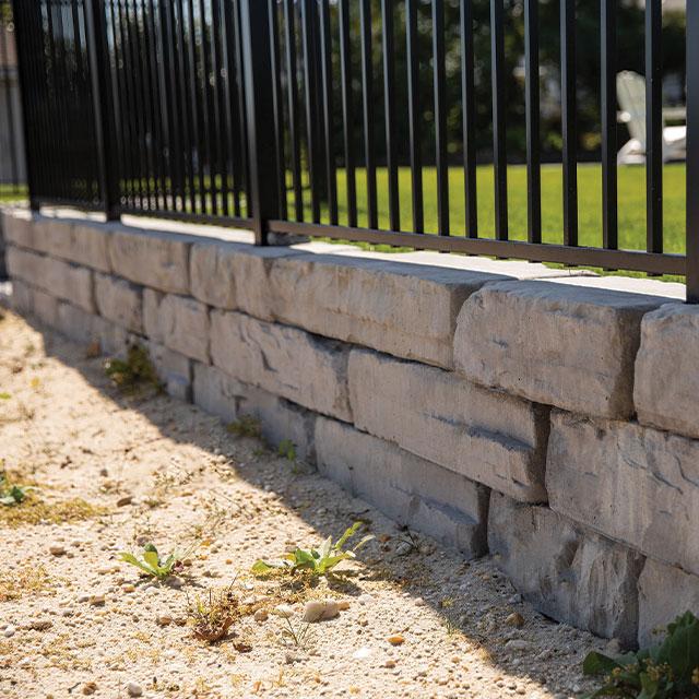 Use the Kodah Wall to construct a regal Bluestone fence, modern York Brown athletic field wall, and much more. With the corner stones, you can easily construct piers beside patios and stairs.