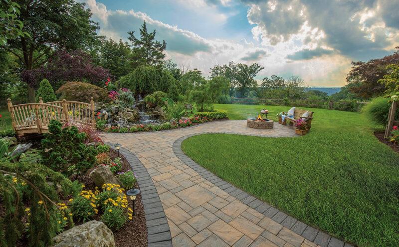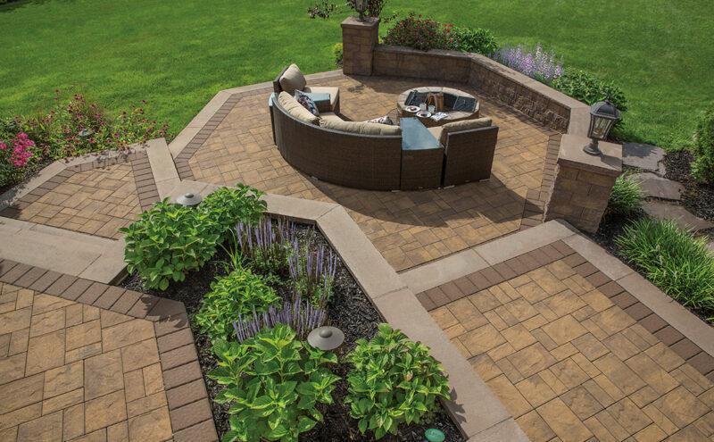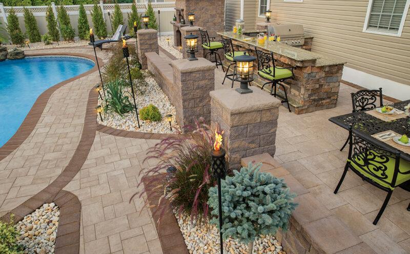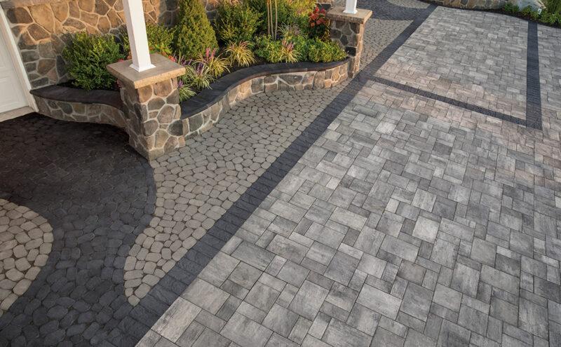 These pavers offer a classic three-piece design that is versatile and well-suited for various applications—the Ledgestone 3-Pc. Design Kit has been a continual best-seller since its introduction in 2006 because it is the perfect choice for many installations due to its size, shape, and durability. The kit is a combination of three extra-large, square and rectangular, modular shapes with prominent, bluestone-like clefts on their surfaces. This kit is installed randomly with no set pattern.