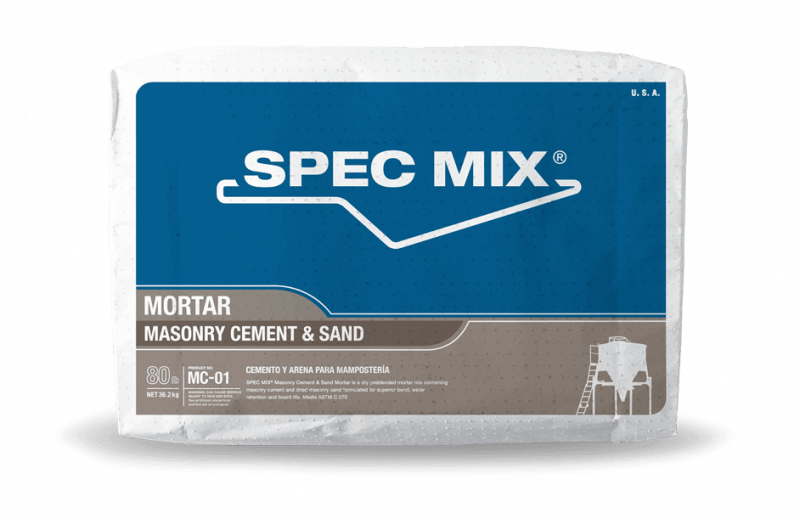 SPEC MIX Masonry Cement & Sand Mortar is available in 80 lb (36.2 kg) packages for easy hand loading or in 3,000 lb (1,360.7 kg) reusable bulk bags to be used with the various SPEC MIX silo systems. When using the silo system, once the bulk bags of mortar are delivered to the project site, the portable silo is loaded with a jobsite forklift and the product is dispensed into a mechanical batch mixer.