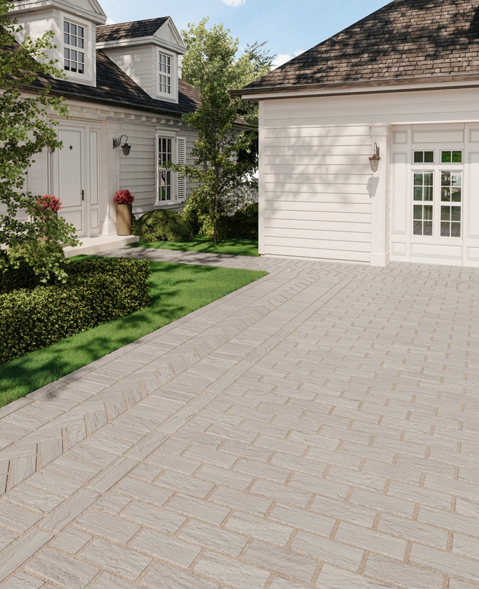 Mika is a new-age take on the classic clay paver look. This concrete version of traditional clay brick is more resistant to pedestrian and vehicular wear. Another feature: Mika’s large void spaces allow for water to trickle between each brick, meaning it can be used as a stylish permeable paver with reclaimed brick looks. Available in a shade of deep clay-brick red called Burgundy, a smokey grey called Carbon and a classic beige with shades of tan called Rock Garden Brown. This high texture, high definition and density paving stone is for those who like something old, but better, more-resistant and new. Did we mention it is also de-icing salt resistant? Match your home’s brickwork with Mika for a reclaimed brick style in your driveway or outdoor living space. Mika is part of the wet cast collection.