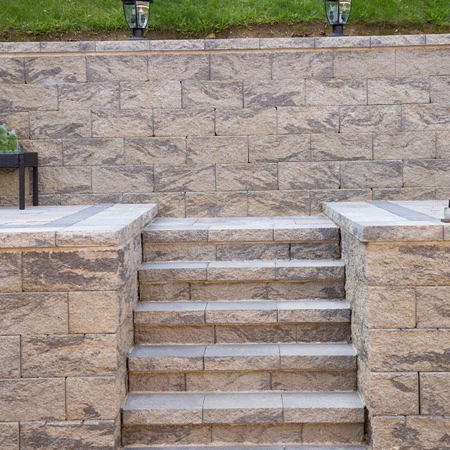 Once you’ve assembled a landscape wall or pier, add these overhanging retaining wall capstones to enhance their appeal and also provide protection to the wall beneath. Many colors are available to complement the main wall — and they’re guaranteed to last for generations. View the product guide or call our experts to learn more about these American-made capstones.