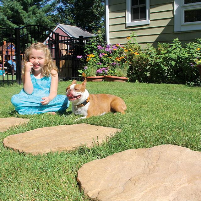 Engineered stepping stones can be laid out any way you like to create straight or winding paths. They measure 22 inches wide by 16.5 inches long to hold even the largest feet. Popular colors such as their Autumn Cotswold, York Brown and Bluestone blends add a touch of style.
