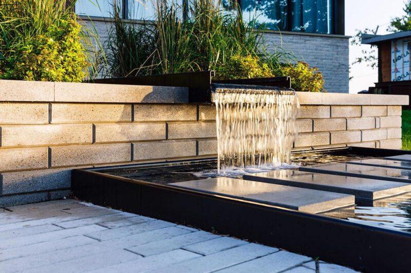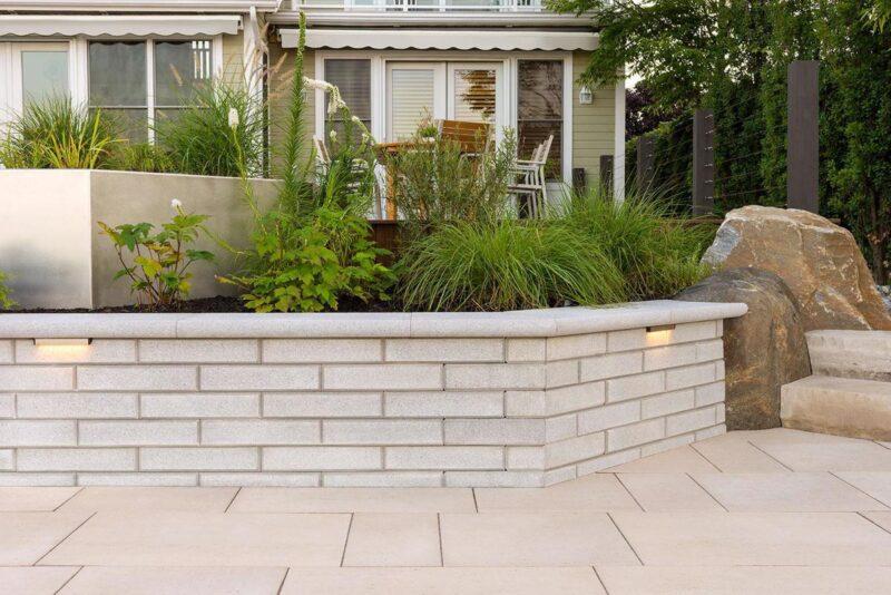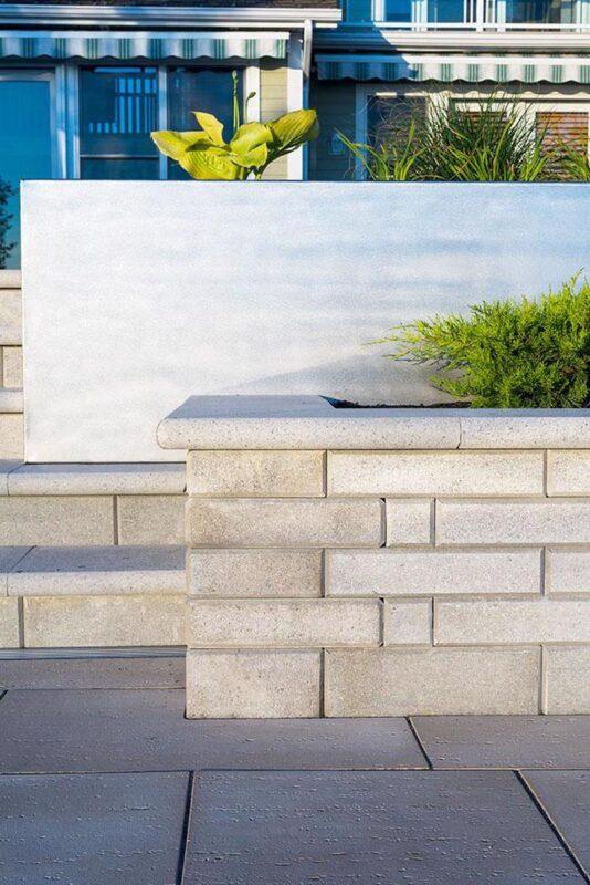 The polished look of the Raffinato collection brings modern elegance to your tailored spaces. The 90mm and 180mm high versions are packaged separately, allowing for a modular or completely linear design. This contemporary double-sided retaining wall which features one side in a polished finish and the other in a smooth finish, is offered in an array of modern colors. This retaining wall can be used to retain earth against erosion, create raised patios or subtly separate spaces with a blade wall. Raffinato is part of the dry cast collection.