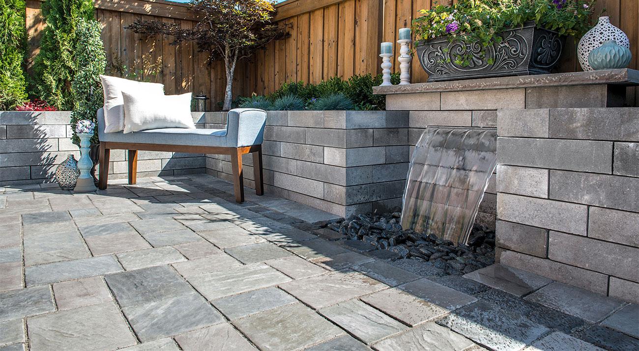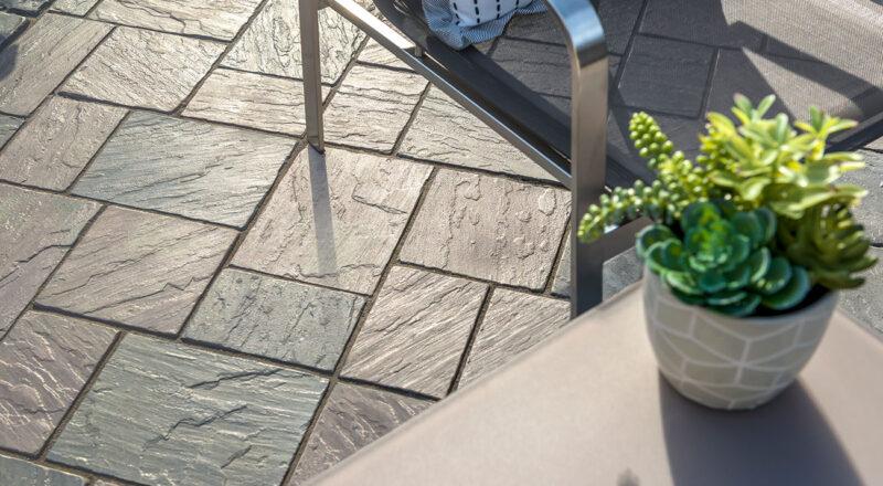 Inspired by the texture of natural cut flagstone, Richcliff offers superior durability and timeless appeal for patios, walkways, and even driveways when utilizing the Random Bundle. A multitude of stone textures were cast using Reala™ Technology, which ensures that finished projects will have a completely random, and natural appearance. And unlike natural stone, which can crack, split and fade, Richcliff is virtually indestructible. Ultima™ Concrete Technology makes Richcliff up to four times stronger than conventional poured concrete. A new large rectangle size is now available for use on its own or in combination with the traditional 3-stone random bundle for expanded patterning options and a larger scale look.
