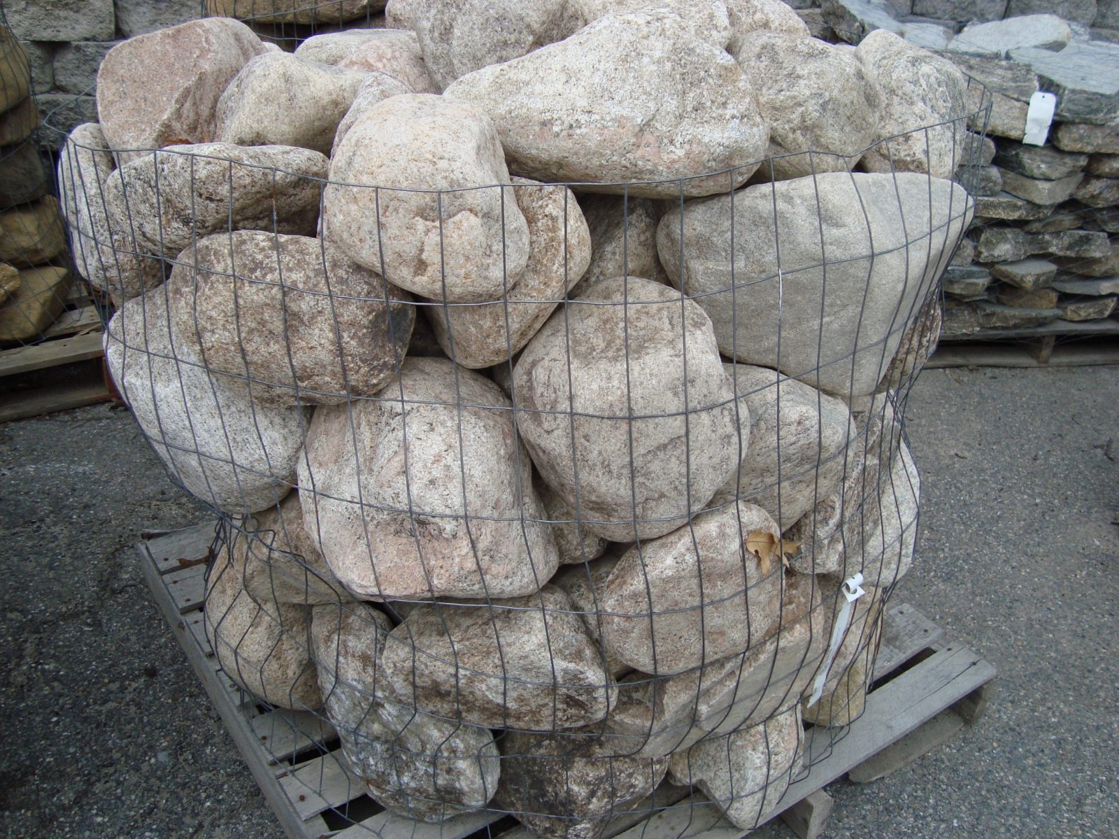 Robust Sakonnet Roundstone, in an assortment of 3 to 16 inch rounds. All rounds are one man stones. Naturally occurring in the New England landscape these Fieldstones are handpicked from the Cape to provide the best quality you will find. The perfect rounds for your rock wall or garden landscaping. Sold by the pound or the full pallet.