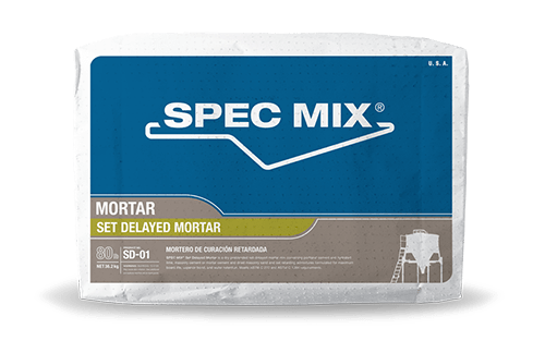 SPEC MIX Set Delayed Mortar is available in 80 lb (36.2 kg) packages for easy hand loading or in 3,000 lb (1,360.7 kg) reusable bulk bags to be used with the various SPEC MIX silo systems. When using the silo system, once the bulk bags of mortar are delivered to the project site, the portable silo is loaded with a jobsite forklift and the product is dispensed into a mechanical batch mixer.