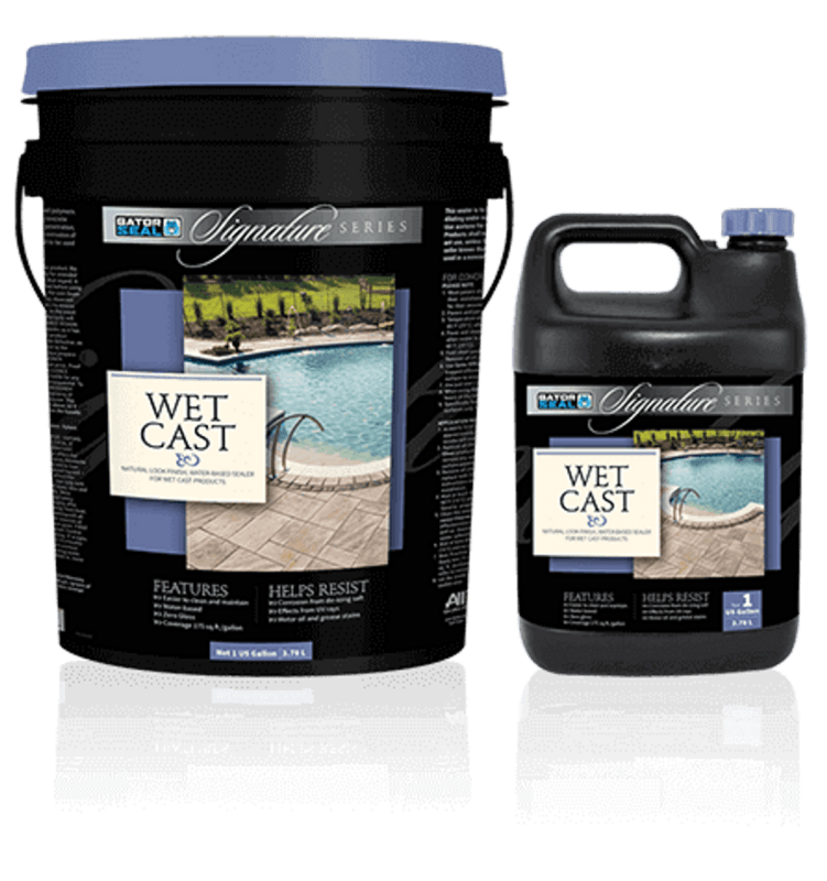 Signature Gator Seal for Wet Cast products is made from fluorochemical polymers. This sealer penetrates deep into the Wet Cast products thus reducing the oil and dirt penetration, as well as protecting them from the corrosion of de-icing salt.