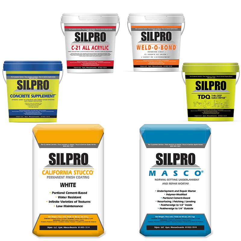 Silpro focuses on repair mortars and resurfacing materials. All of their products are available in many different sizes so you always have what your need. Some come in bags, others in buckets. If you would like us to order a size that isn’t in stock, we can special order that.