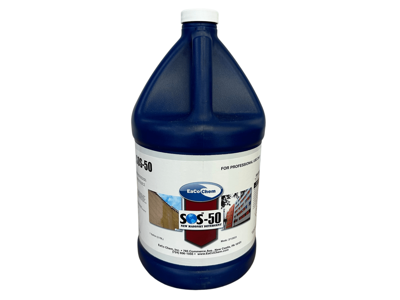 SOS-50 is a buffered detergent-based solution designed for the cleaning of new masonry structures. SOS-50 can be used on virtually any type of brick, block, stone, cast stone, and precast. No scrubbing is necessary.