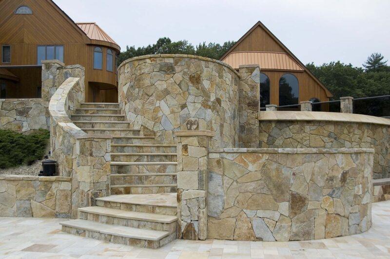 Basically rectangular and exhibiting seam and split faces of the stone, ledge stone projects a more linear appearance.