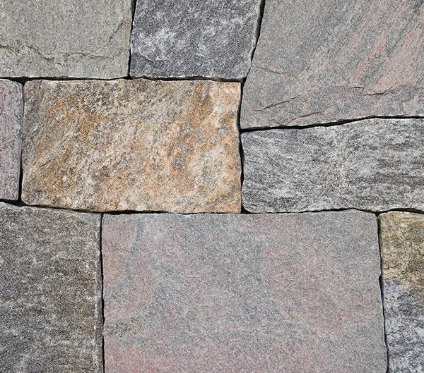 Basically rectangular and exhibiting seam and split faces of the stone, ledge stone projects a more linear appearance.