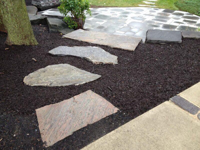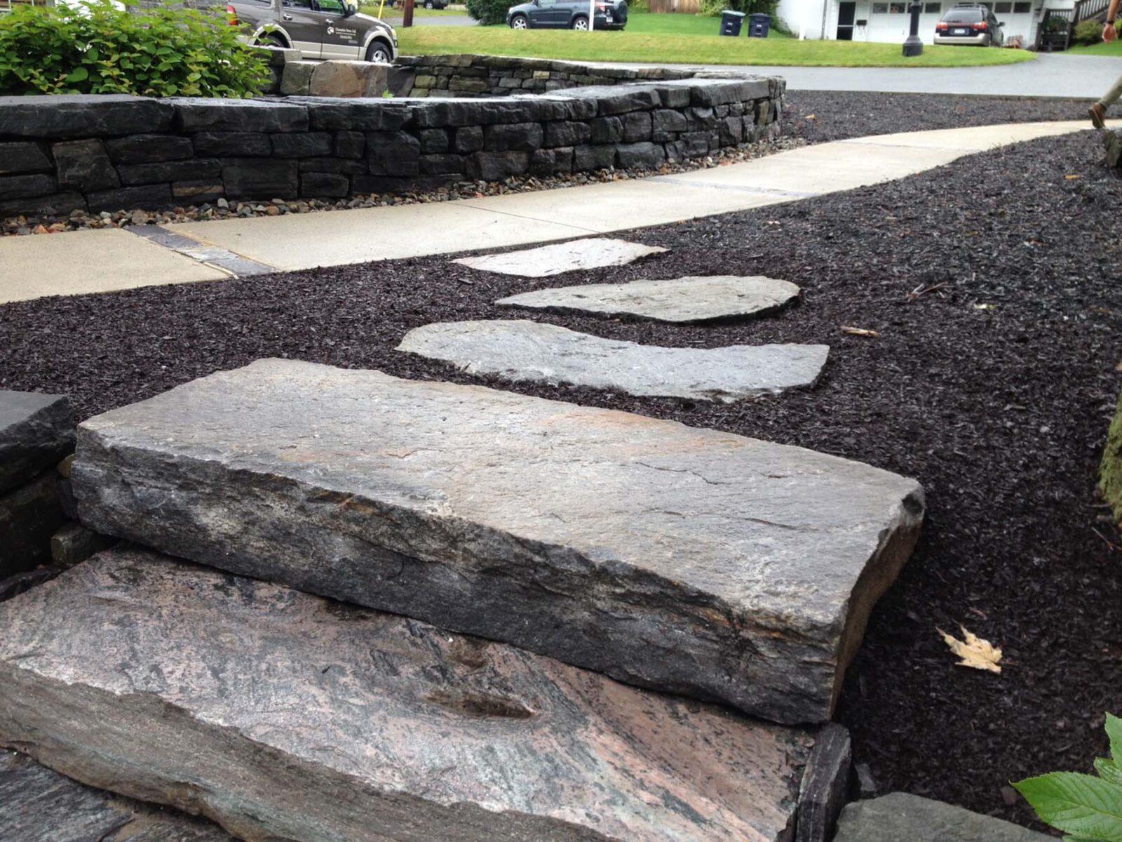 Irregularly shaped quarry material exhibiting the seam (natural) face of the stone.