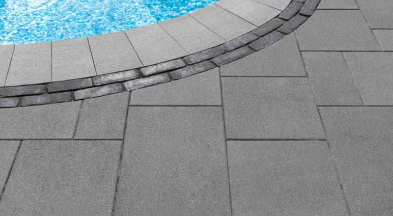 The granite-like surface appearance makes Umbriano™ a popular choice for sleek, modern projects as a paver or wall product (see U-Cara Multiface Wall System). Its unique mottled surface is achieved with ColorFusion™ Technology which randomly disperses rich color and granite particles to achieve a natural, non-slip texture. These characteristics make it a popular choice for pool decks. As well, Umbriano™ is factory sealed with EasyClean™, an integral surface protection from stains. This is a significant benefit when Umbriano is used in driveways, outdoor dining areas and high traffic commercial projects.