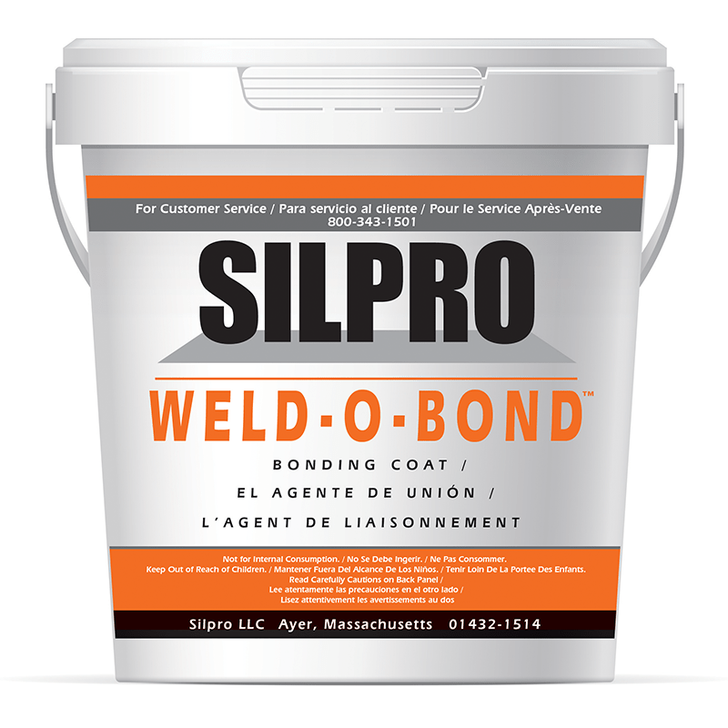 Silpro Weld-O-Bond™ Bonding Coat is specifically formulated for bonding Portland cement mixes to interior or exterior concrete or masonry surfaces and gypsum mixes to interior concrete, masonry, or plaster surfaces. Use Weld-O-Bond ™ to bond Silpro Concrete Finish™, California Stucco™ , Easy Patch™ or VO Patch® to concrete or masonry walls.
