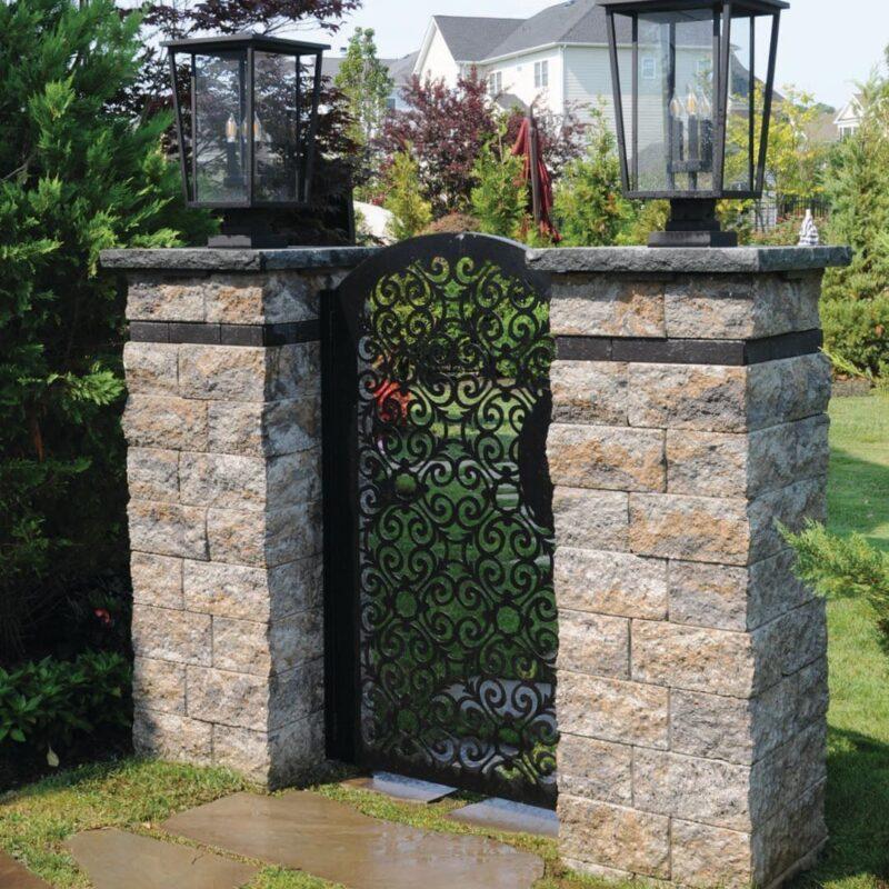 6″ Colonial Wall in South Bay Blend: Completing the ensemble, the 6″ Colonial Wall in the South Bay Blend seamlessly harmonizes with the Stone Ridge Contemporary 18×18 pavers in the first walkway. This wall not only serves as a functional retaining element but also adds a sense of continuity to the design. The South Bay Blend wall units seamlessly blend with the pavers, creating a cohesive and visually appealing landscape.